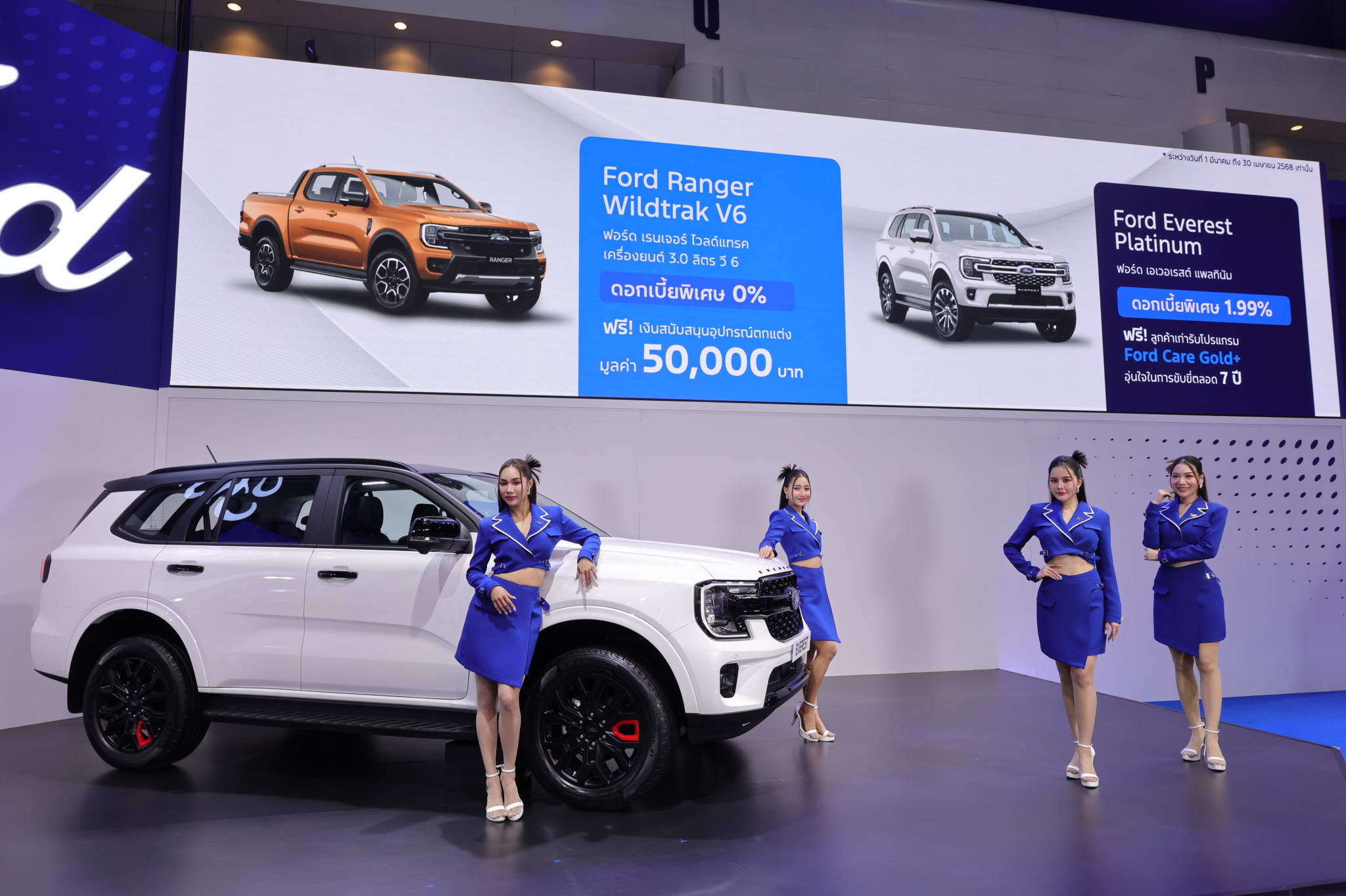 - Ford Everest Platinum with a special interest rate of 1.99% and free first-class insurance. Special offer! Existing customers get Ford Care Gold+ program for free, ensuring peace of mind in driving for 7 years. New customers can purchase the Ford Care Gold+ program for 36,050 baht, discounted from the regular price of 66,050 baht.