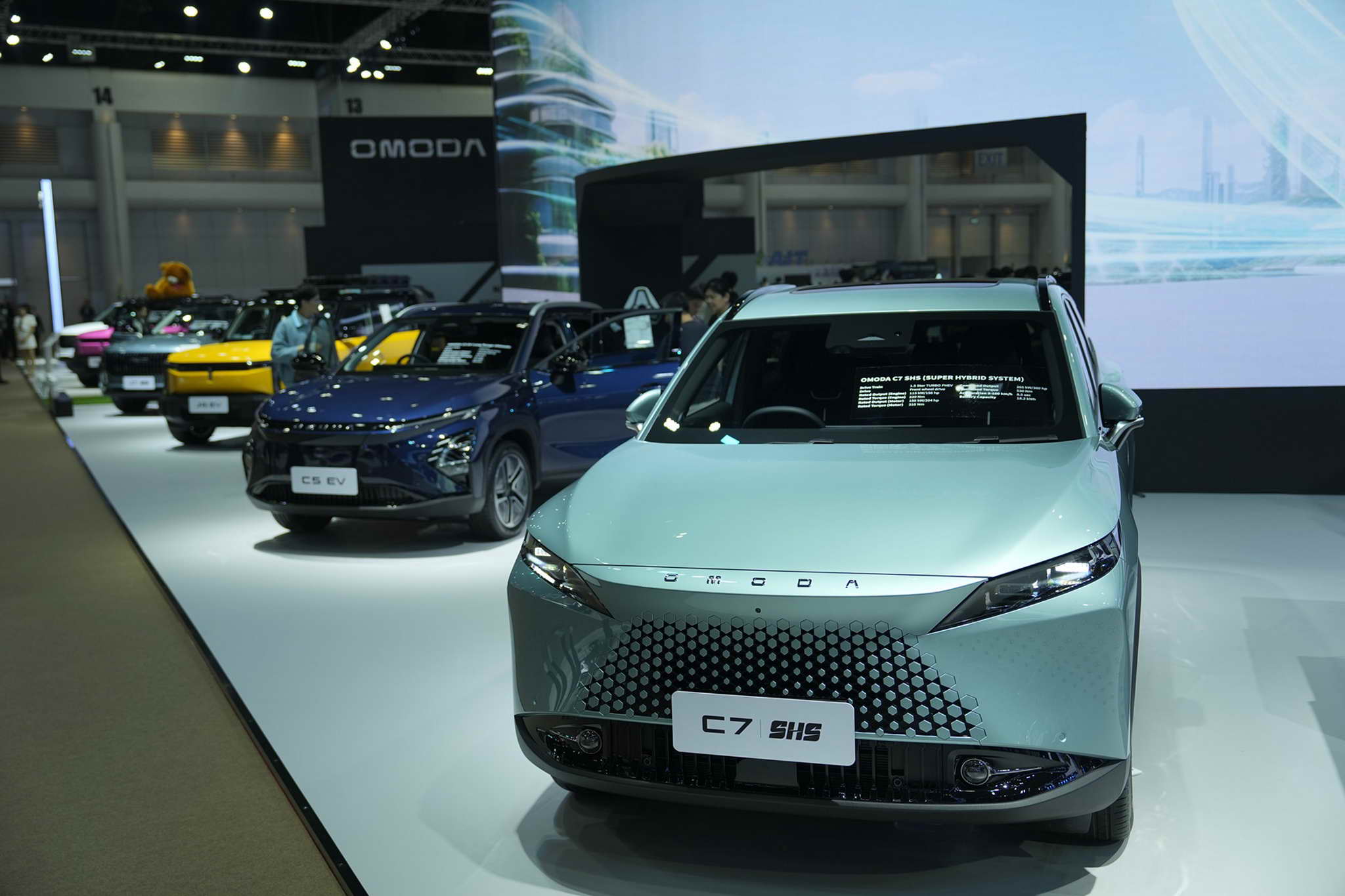 . (This specification is subject to change when imported into Thailand) Another model on display is  the OMODA C7 SHS, designed under the concept  of “Global Co-creation, Unlimited Enjoyment” that will lead consumers to a new era of automotive design by