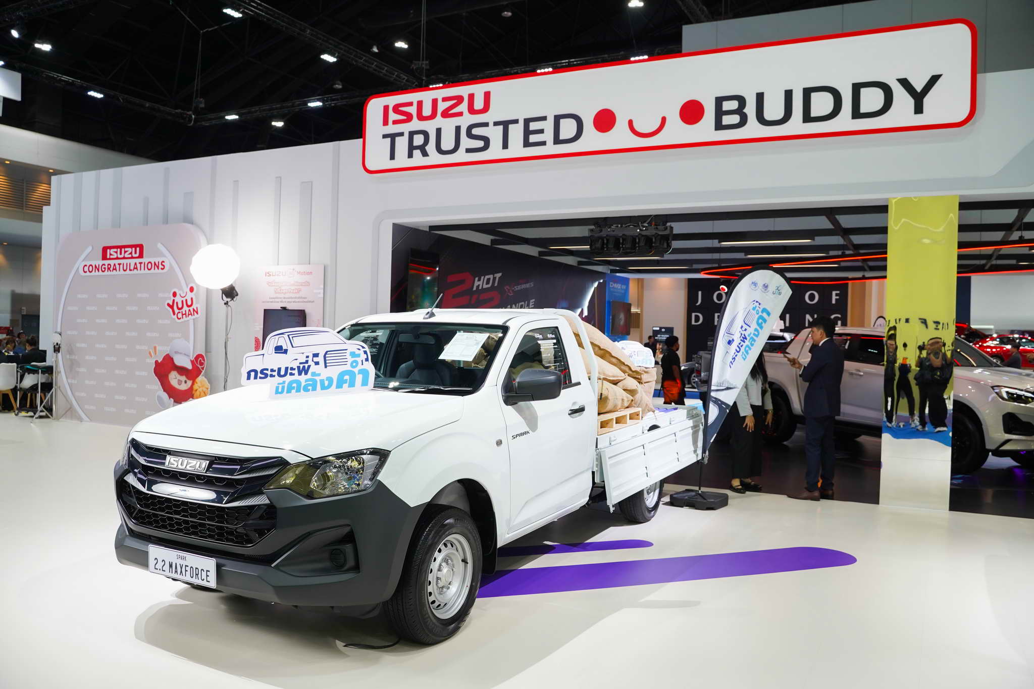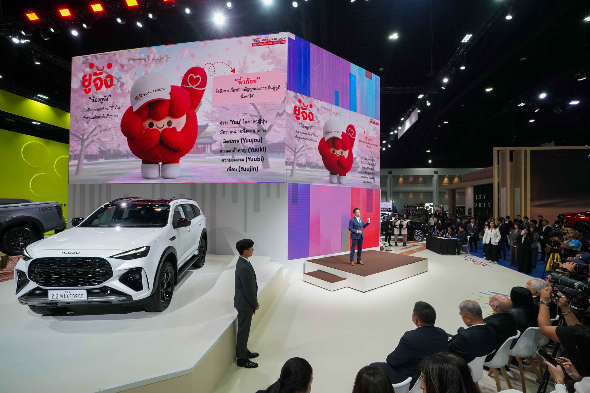 At the center of the booth is “Yuu-chan,” Isuzu’s latest mascot, who brings the “Isuzu Trusted Buddy” message to life on a massive LED wall with 3D visuals.