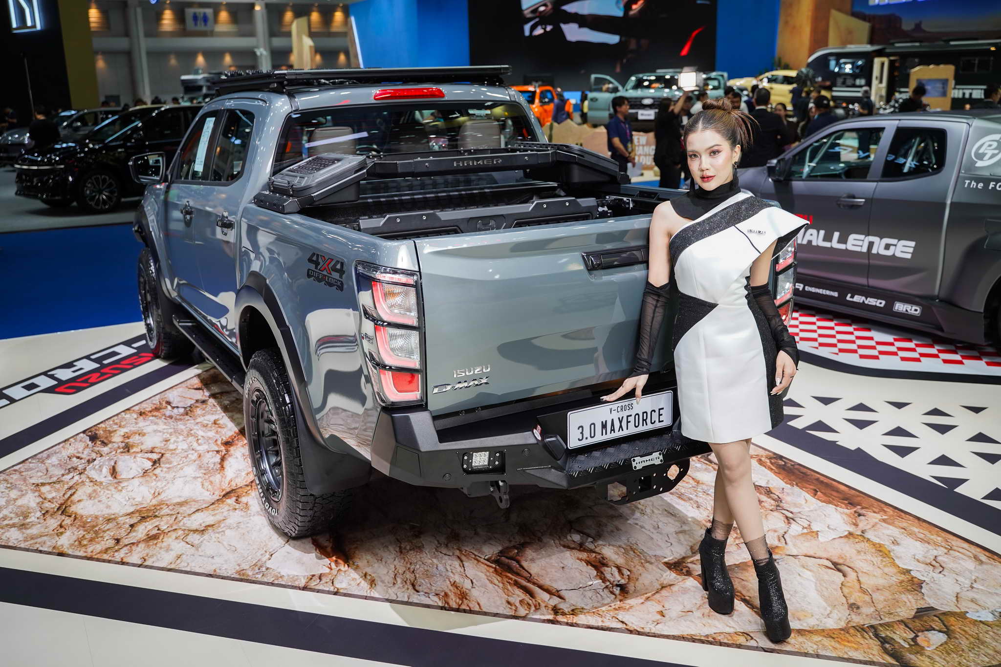 5. ISUZU V-CROSS HAMER: A hardcore off-road version with HAMER accessories (bull bar, roof rack, adventure box) and Black Rhino wheels.