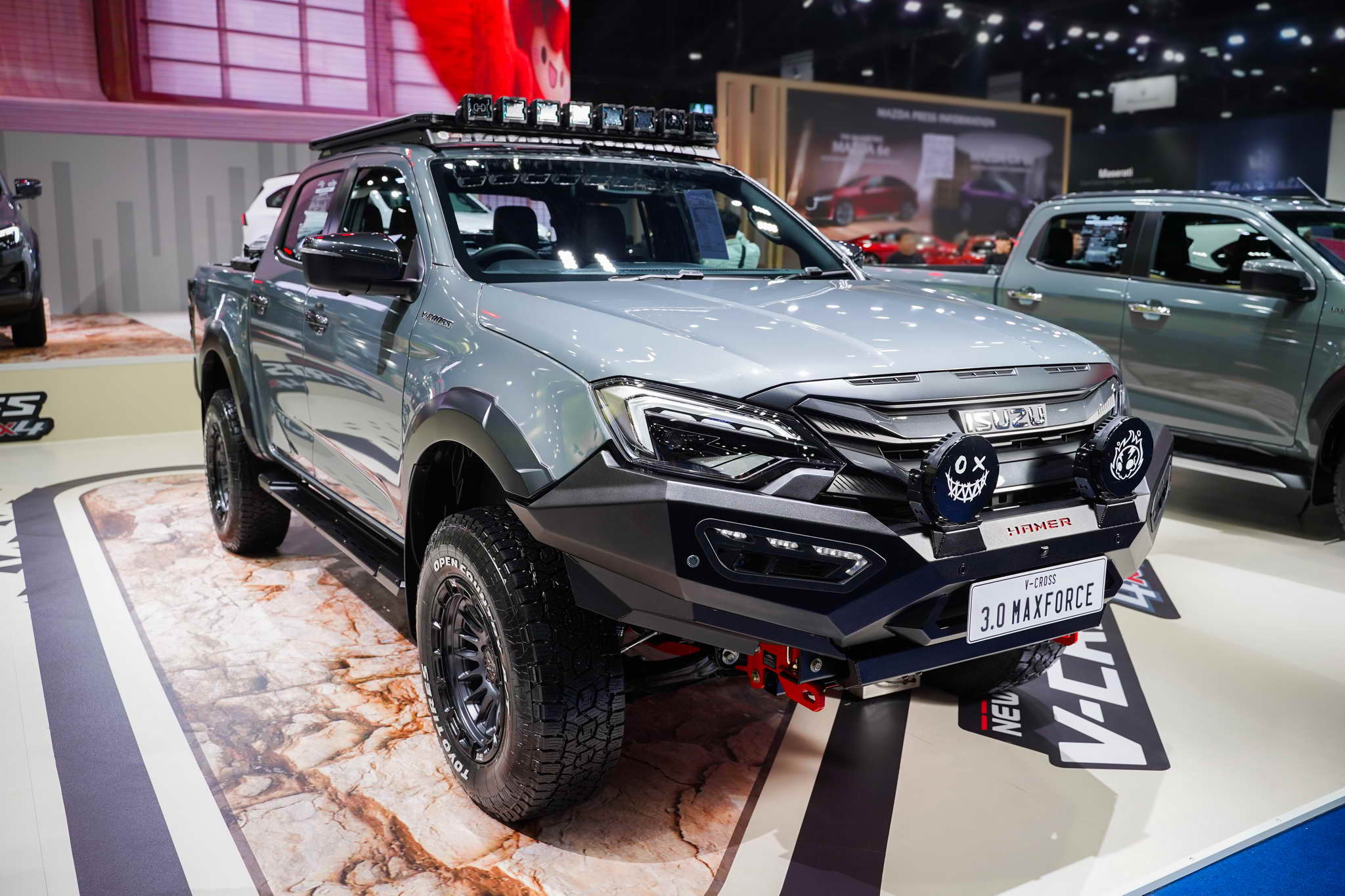 5. ISUZU V-CROSS HAMER: A hardcore off-road version with HAMER accessories (bull bar, roof rack, adventure box) and Black Rhino wheels.